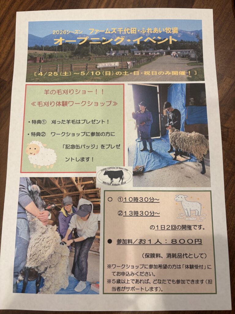 ファームズ千代田・ふれあい牧場では、ゴールデンウィーク期間中、オープニングイベントとして**「羊の毛刈り体験」**を開催いたします!